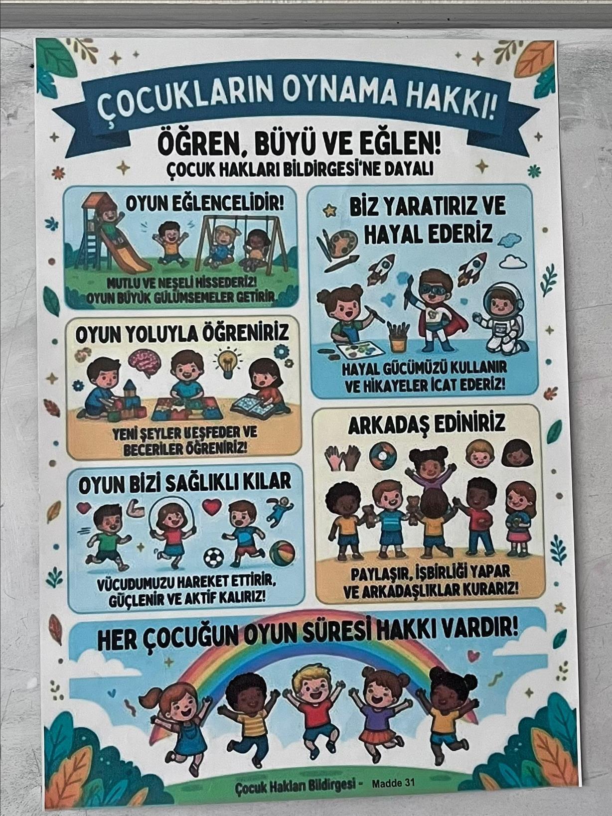 "Çocuk Hakları" dersi projesi olarak hayata geçirilen bu çalışmada, her çocuğun doğuştan sahip olduğu temel haklar renkli ve etkileyici görsellerle anlatıldı. Öğrencilerimizin; çocukların sesini duyurmak ve onların daha güvenli bir dünyada büyümesine katkı sağlamak amacıyla hazırladığı bu özel seçkiyi sizlerle paylaşıyoruz.