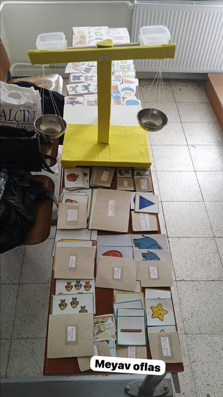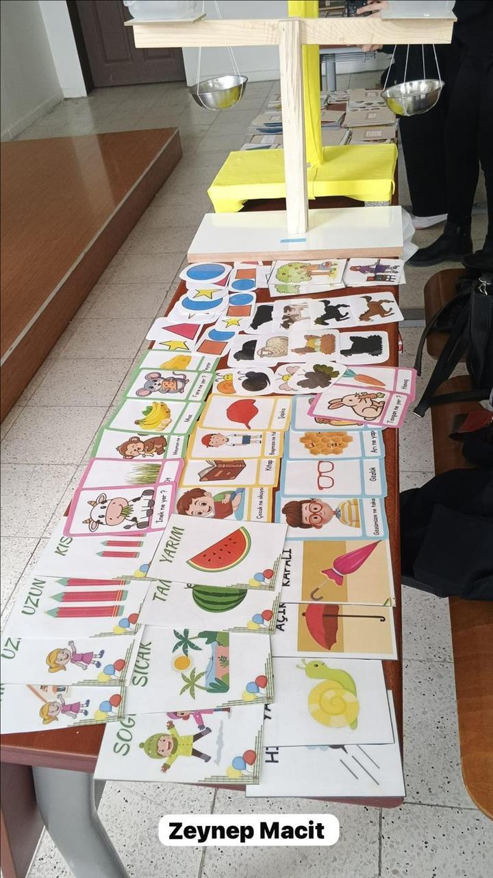 Yüksekokulumuz Çocuk Gelişimi Programı 2. sınıf öğrencileri, Öğr. Gör. Mehmet AYHAN rehberliğinde "Okul Öncesinde Fen ve Matematik Eğitimi" dersi kapsamında çocukların bilişsel gelişimini destekleyecek özgün materyaller tasarladı. Çalışmalar kapsamında; eşleştirme, karşılaştırma, sınıflama, sıralama ve örüntü gibi temel matematik becerilerine yönelik hazırlanan eğitici kartların yanı sıra, çocukların ölçme deneyimlerini sınıflarda pekiştirebilmeleri amacıyla el yapımı eşit kollu teraziler geliştirildi. Öğrencilerimizin teorik bilgilerini yaratıcı uygulamalara dönüştürdüğü bu araçlar, bölümümüzde düzenlenen sergiyle izlenime sunuldu. Geleceğin okul öncesi öğretmen adaylarını, çocukların somut öğrenme süreçlerine katkı sağlayacak bu başarılı çalışmalarından dolayı tebrik ederiz.